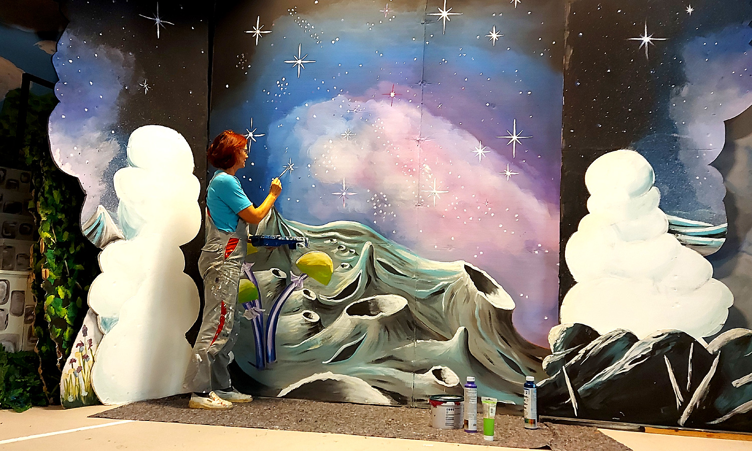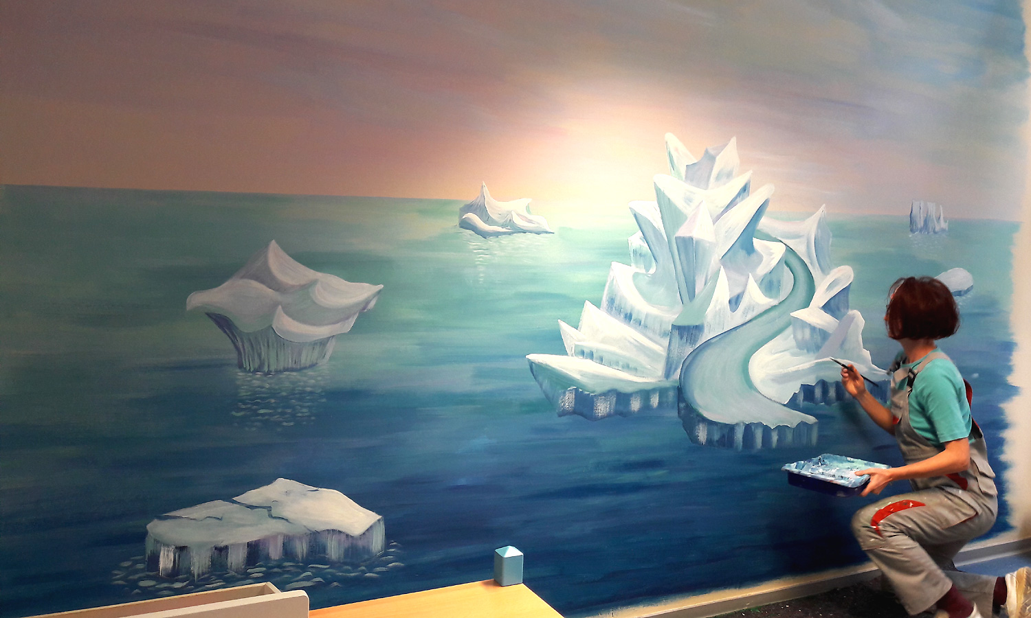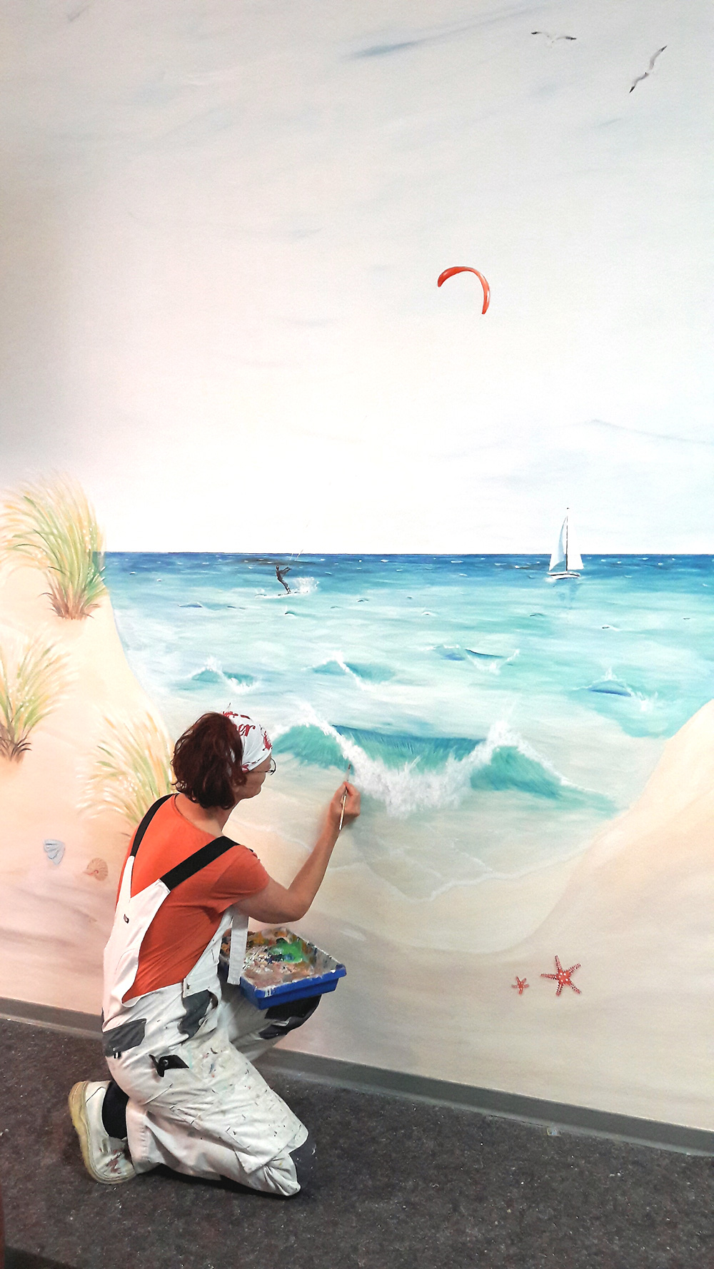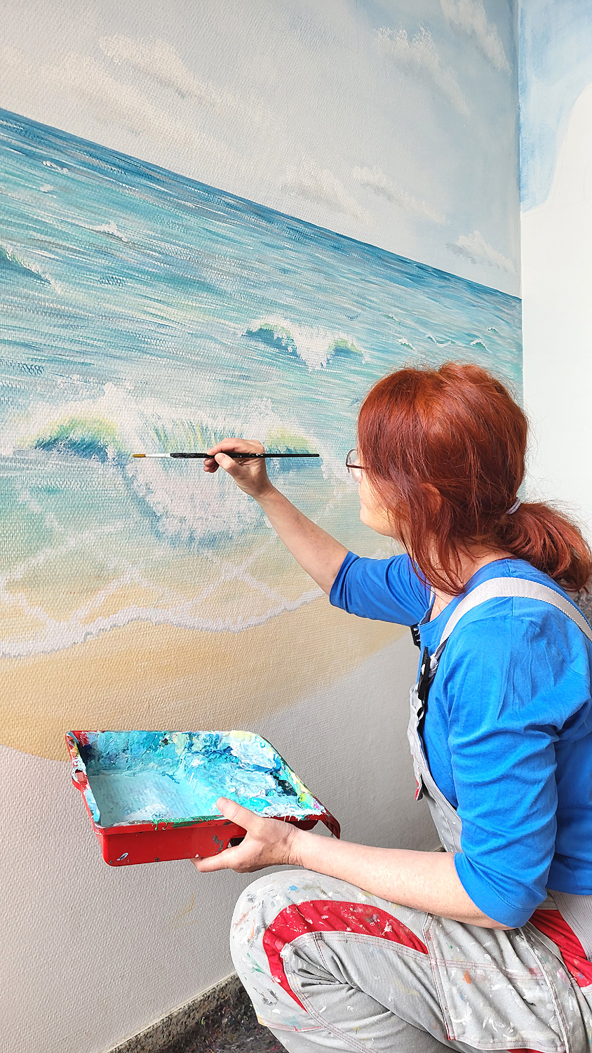Wandmalerei in Räumen sprengt Grenzen und schafft Weite, Tiefe, eröffnet neue Welten zum Eintauchen, Abheben und Träumen.