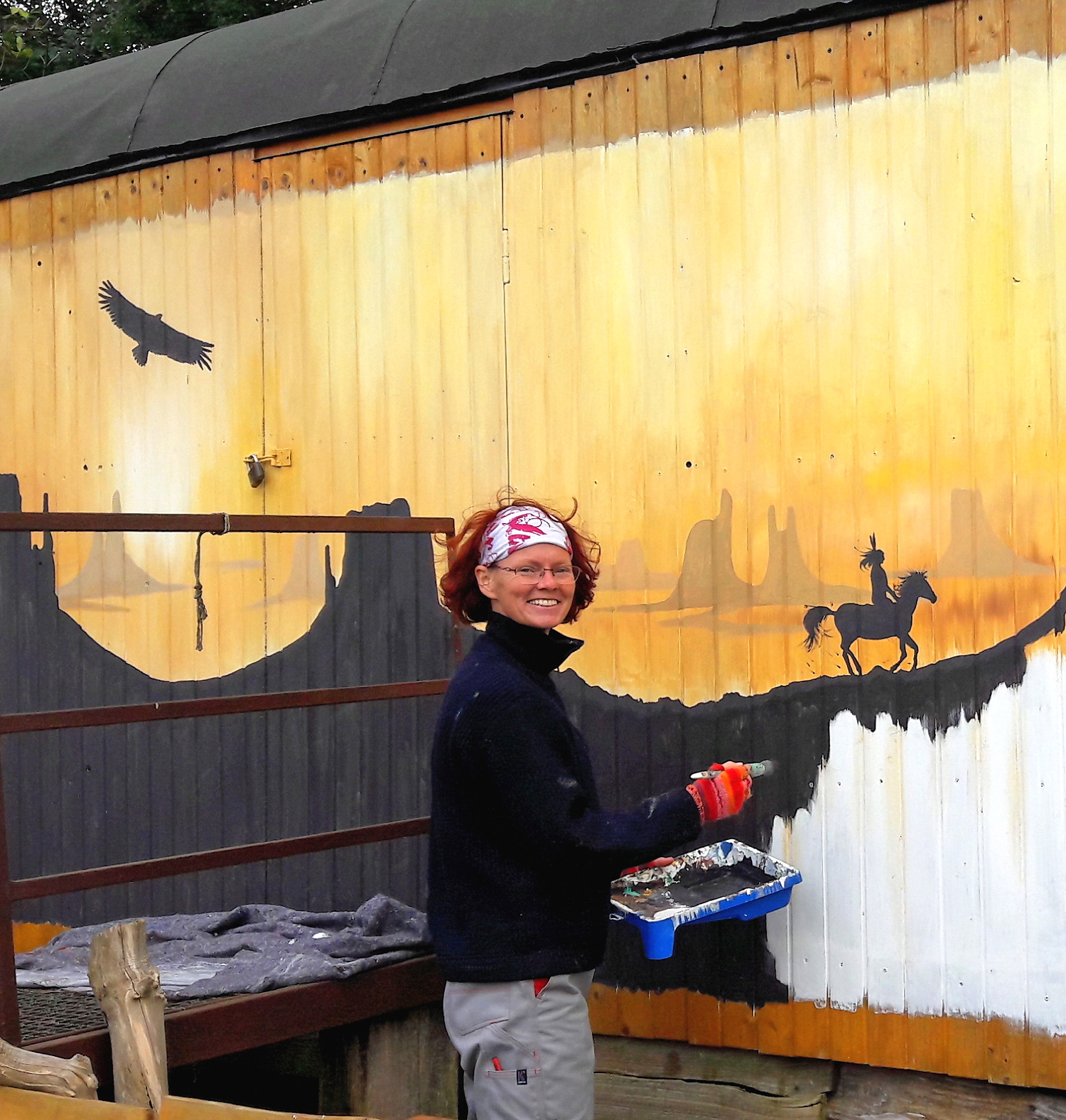 Innen- und Außenräumen, Fassadenmalerei, Wandmalerei, Bühnenbild Malerei, Leinwand Malerei, Auftragsmalerei, Tier- und Portrait Malerei, Illustrationen, grafische Gestaltung.